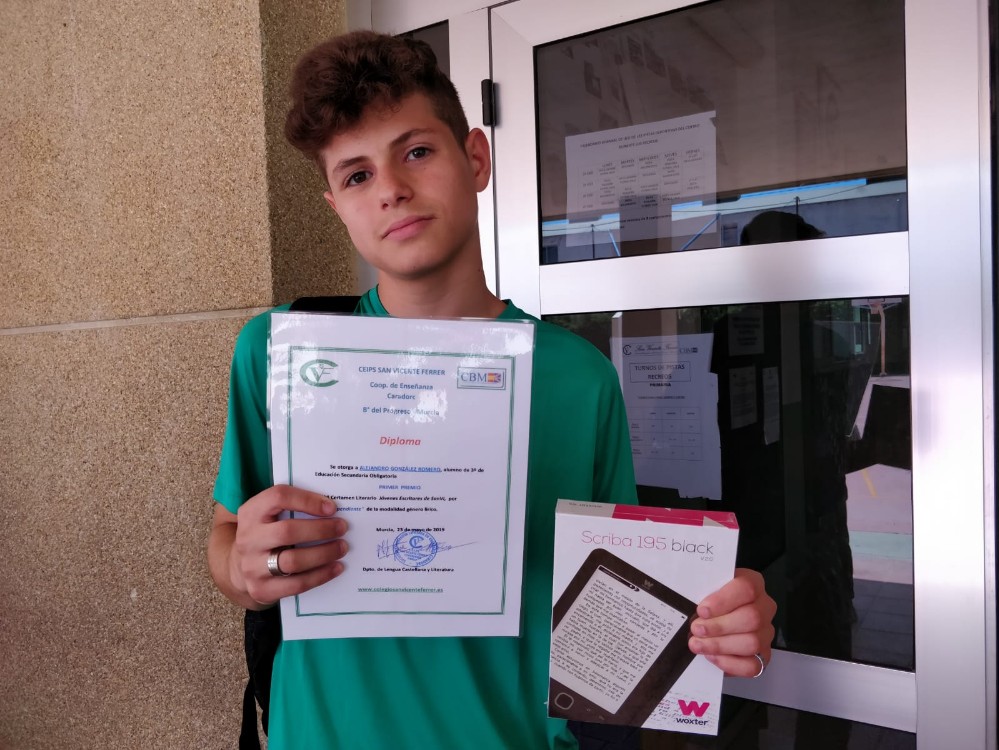 A continuación, las profesoras del departamento de Lengua Castellana y Literatura, María Dolores Guillamón y Mari Carmen Espinosa, han entregado los Premios SanVi del VI Certamen Literario, siendo los alumnos galardonados:
