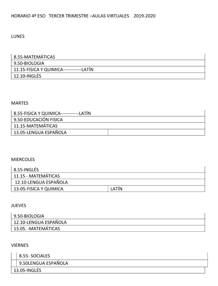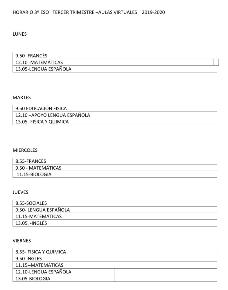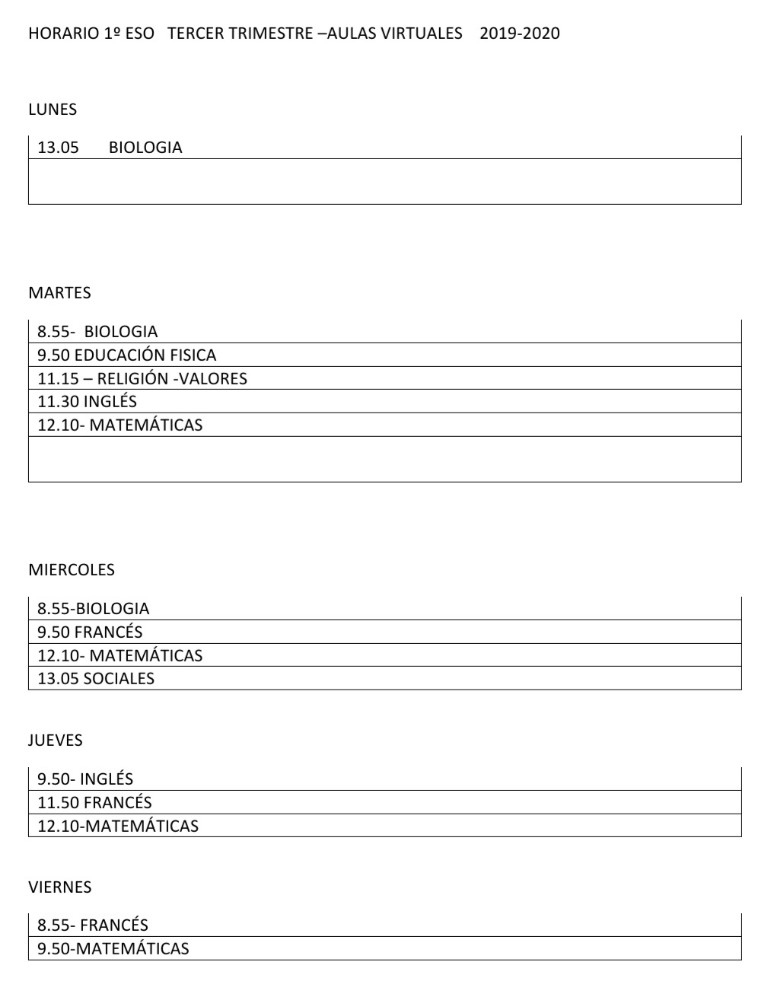 Queridas familias, como ya sabéis, este lunes 20 comenzamos el tercer trimestre de este curso escolar y seguimos adelante con las clases de forma telemática. Para ello hemos organizado horarios, tanto para Primaria como para Secundaria, en los que los profesores del Centro van a dar clases por la aplicación zoom, como antes de las vacaciones.