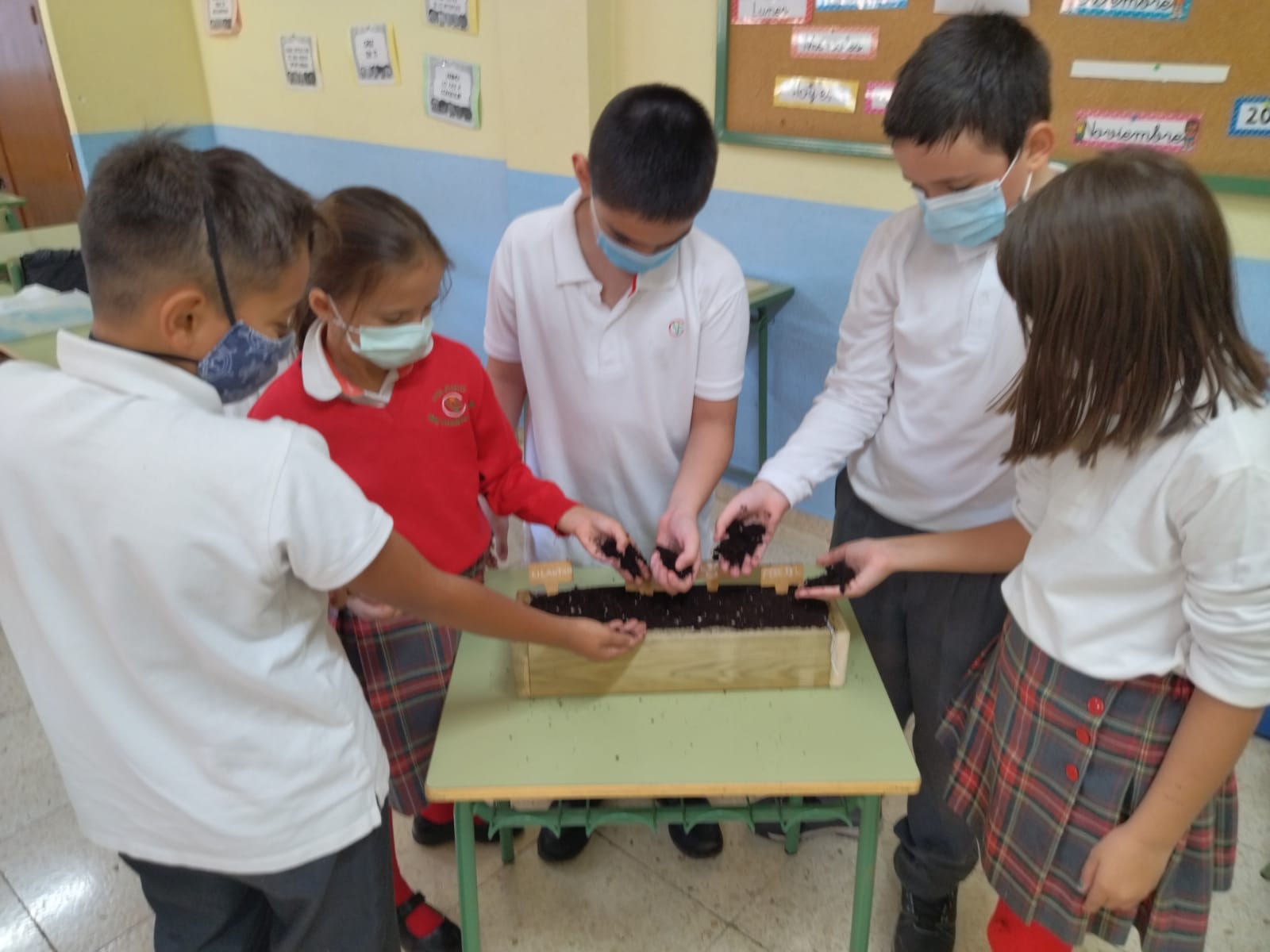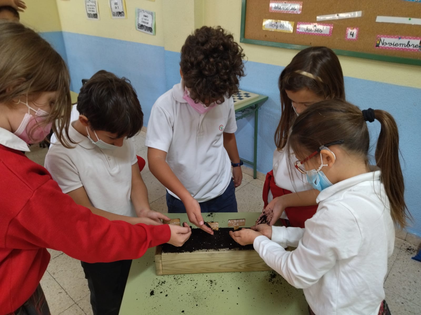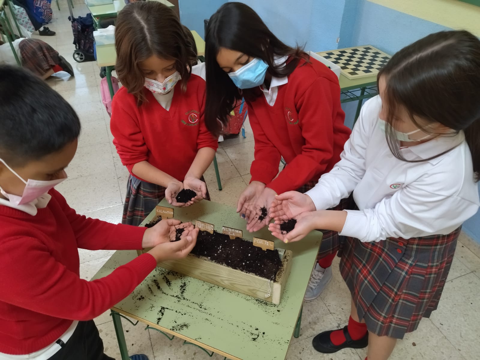 Los alumnos de cuarto de Educación Primaria hemos plantado semillas de cilantro, tomillo, albahaca y perejil…