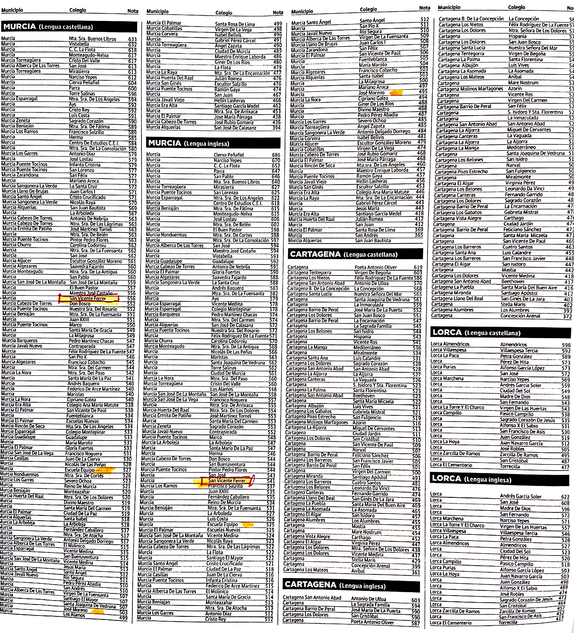 Resultados de la prueba de diagnóstico del curso 2013-14 realizada por la consejería.