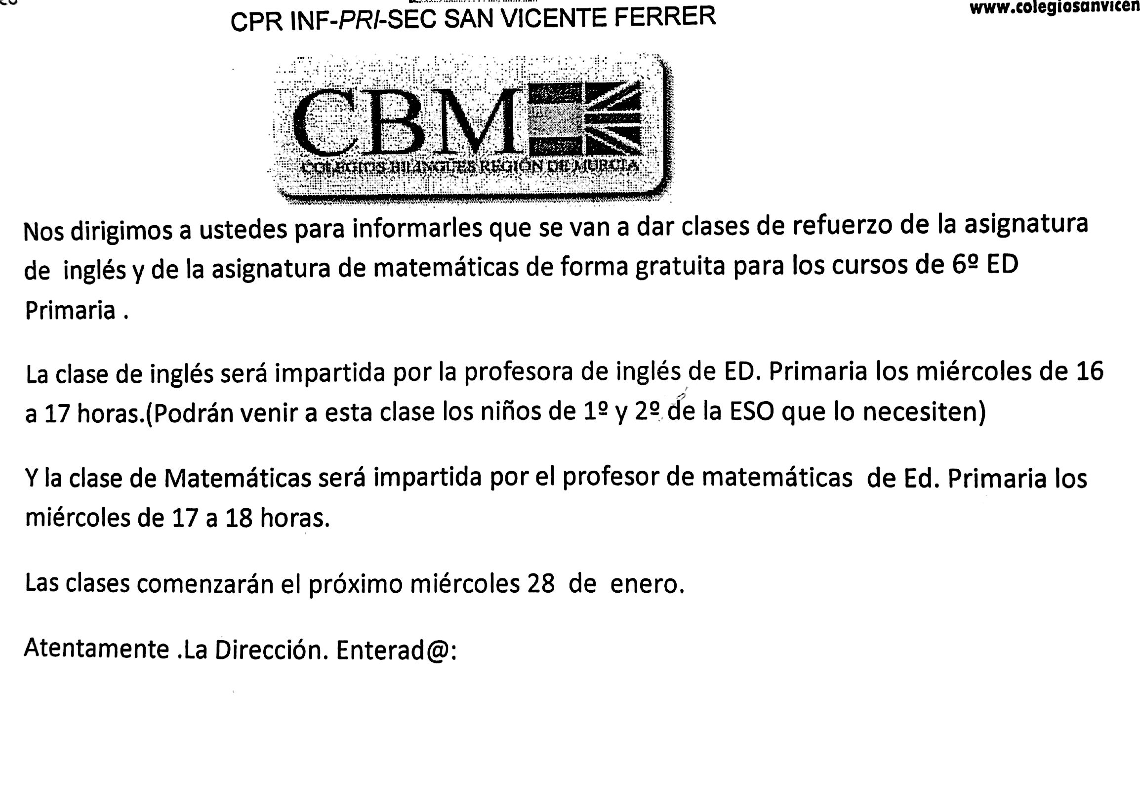 Refuerzo de inglés y matemáticas para 6° de primaria sanvi Publicado el 27/01/2015 Publicado en noticias Nota informariva:
